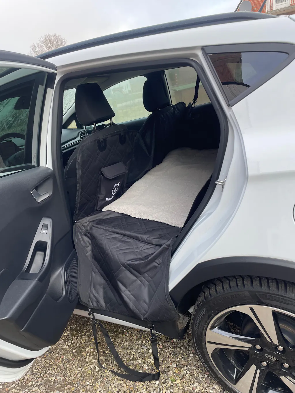 Um die Fellbengel Hundetreppe für die Rückbank gut auflegen zu können, braucht man eine stabile gerade Fläche. Genau das bieten die festen Bodenplatten unseres Rücksitzschutzes.